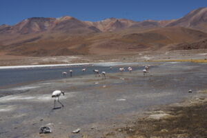 Die Laguna Colorada erreichen Sie am zweiten Tag der Salar de Uyuni Tour, nachdem Sie zuvor den Vulkan Ollagüe und die eindrucksvollen Felsformationen vom „Árbol de Piedra“ passiert haben. Eine Stunde später erreichen Sie dann die Laguna Colorado, die sich in einer Höhe von ca. 4.280 Metern befindet. Der Wind weht hier zumeist recht kräftig und warme, winddichte Kleidung ist angebracht! Die Lagune hat eine Grösse von ca. 60 km² und ihre Farbe ändert sich von lachsrot, blutrot, karminrot bis hin zu dunkelviolett. Die Farbveränderungen werden durch Photosynthese der Algen bewirkt, die unterschiedlich schnell abläuft. Zu den Bewohnern der Lagune zählen zudem drei Flamingo-Arten. Der Andenflamingo, der Chilenische Flamingo und der James Flamingo.